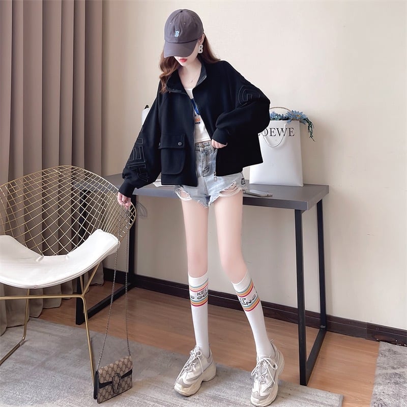 ジャケット ショートジャケット ショート丈 アウター レディース 長袖 襟付き ジッパー ファスナー 前開き 文字 ルーズ レトロ カジュアル スポーティー きれいめ 可愛い お洒落 普段使い 学生 通学 OL 通勤 普段着 日常使い お出かけ デート 女子会 アウトドア 運動 秋 ホワイト 白 グレー 灰色 ブラック 黒 M L XL 10代 20代 30代 大人 大人可愛い コーデ コーディネート 韓国 ファッション オルチャン お取り寄せ 送料無料 hll-0309