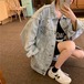 デニムジャケット デニム ジャケット Gジャン ダメージデニム アウター レディース 長袖 襟付き ポロカラー ボタン 前開き ポケット ルーズ レトロ カジュアル きれいめ 可愛い お洒落 普段使い 学生 通学 OL 通勤 普段着 日常使い お出かけ デート 女子会 春 ブルー 青 S M L XL 2XL 3XL 4XL ラージサイズ 10代 20代 30代 大人 大人可愛い コーデ コーディネート 韓国 ファッション オルチャン お取り寄せ 送料無料 hll-0315