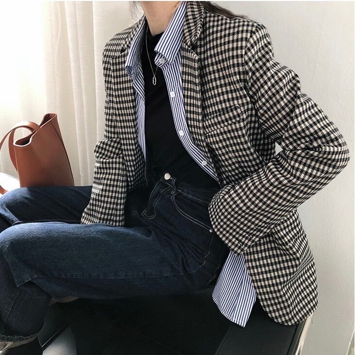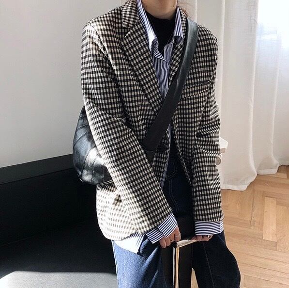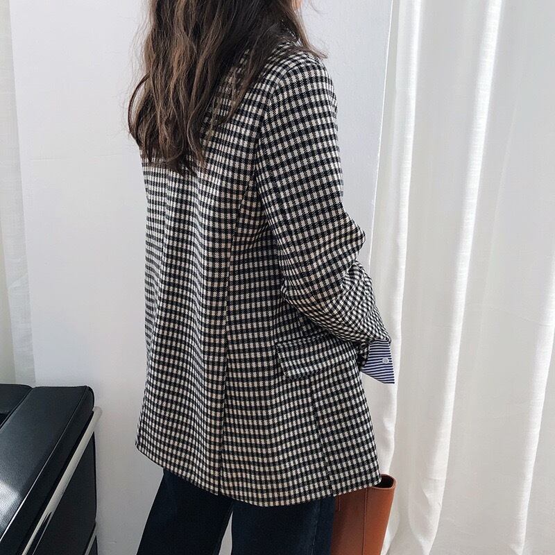 ジャケット スーツジャケット 千鳥格子 アウター レディース 長袖 襟付き ボタン 前開き ルーズ カジュアル レトロ きれいめ お洒落 お出かけ お呼ばれ デート 春 秋 M L 20代 30代 大人 大人かっこいい コーデ コーディネート 韓国 ファッション オルチャン お取り寄せ 送料無料 hll-0323