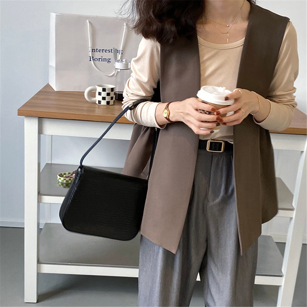 ベスト ジャケット 上着 チョッキ アウター レディース ノースリーブ Vネック 前開き ポケット 無地 ルーズ レトロ きれいめ お洒落 お出かけ OL 通勤 普段使い 普段着 日常使い デート 女子会 春 秋 ブラウン 茶色 ブラック 黒 M L 20代 30代 大人 大人かっこいい コーデ コーディネート 韓国 ファッション オルチャン お取り寄せ 送料無料 hll-0330
