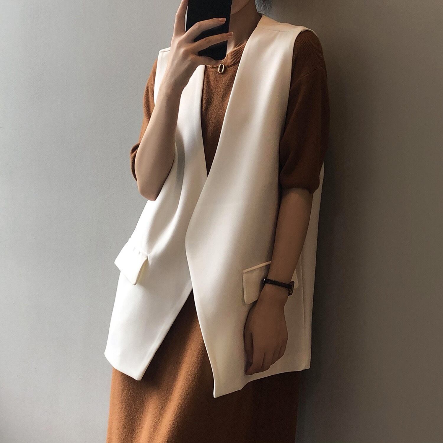 ベスト ジャケット 上着 チョッキ アウター レディース ノースリーブ Vネック 前開き ポケット 無地 ルーズ レトロ きれいめ お洒落 お出かけ OL 通勤 普段使い 普段着 日常使い デート 女子会 春 秋 ホワイト 白 ブラウン 茶色 ブラック 黒 S M L 20代 30代 大人 大人かっこいい コーデ コーディネート 韓国 ファッション オルチャン お取り寄せ 送料無料 hll-0331