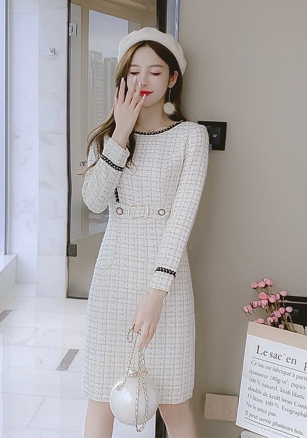 ワンピース ウールワンピース ウール 膝丈スカート 膝丈 レディース 長袖 ラウンドネック Aラインスカート プルオーバー ベルト ハイウエスト スリム 大人女子 大人かっこいい お洒落 エレガント 春 秋 ホワイト 白 20代 30代 S M L XL お出かけ お呼ばれ パーティー 女子会 デート 大人 コーデ コーディネート 韓国 ファッション オルチャン お取り寄せ 送料無料 hll-0338