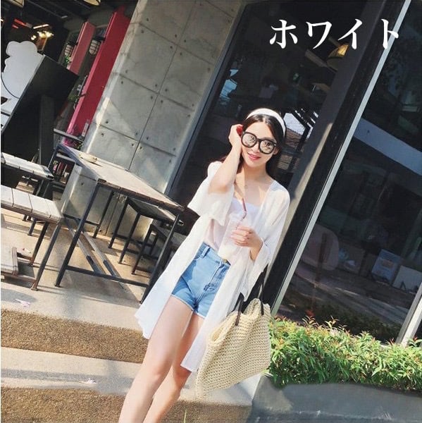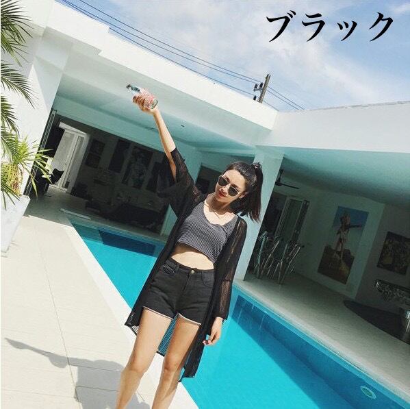 カーディガン ショール ミドル丈 アウター レディース 七分袖 メッシュ シースルー 日焼け止め 前開き 無地 ルーズ カジュアル きれいめ かっこいい お洒落 日常使い 普段着 普段使い デート お出かけ 女子会 海 リゾート 夏 ホワイト 白 ブラック 黒 ワンサイズ 10代 20代 30代 大人 コーデ コーディネート 韓国 ファッション オルチャン お取り寄せ 送料無料 hll-0340