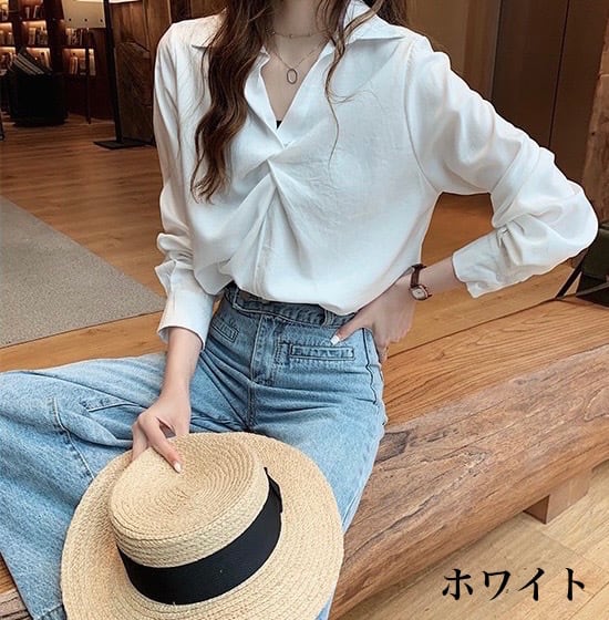 シャツ レディース トップス 長袖 襟付き プルオーバー 無地 ルーズ レトロ カジュアル きれいめ 上品 清楚 お洒落 普段使い 普段着 日常使い OL 通勤 お出かけ デート 女子会 休日 春 ホワイト 白 ブルー 青 ブラック 黒 M L XL 2XL 3XL 4XL ラージサイズ 20代 30代 大人 大人かっこいい コーデ コーディネート 韓国 ファッション オルチャン お取り寄せ 送料無料 hll-0344