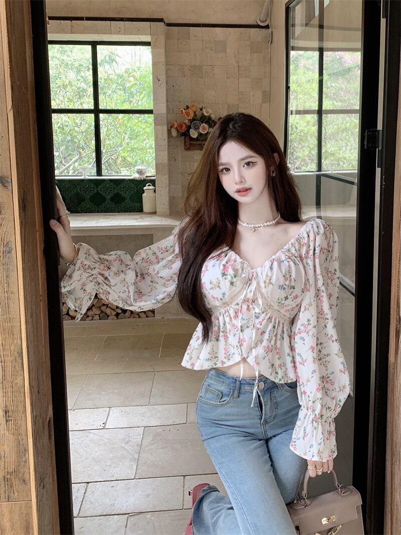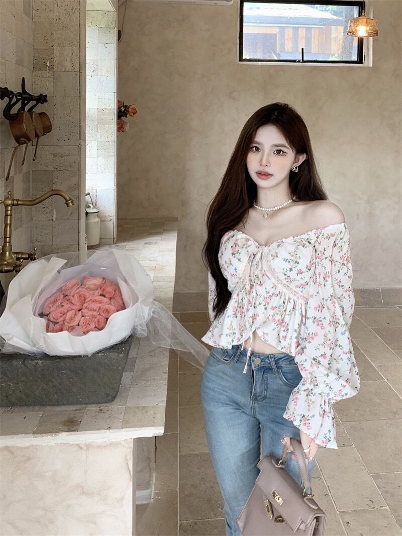 シャツ ショート丈 レディース トップス 長袖 オフショルダー プルオーバー 花柄 ルーズ レトロ カジュアル セクシー きれいめ 上品 清楚 お洒落 普段使い 普段着 日常使い お出かけ デート 女子会 休日 秋 ホワイト 白 S M 10代 20代 大人 大人かっこいい コーデ コーディネート 韓国 ファッション オルチャン お取り寄せ 送料無料 hll-0347