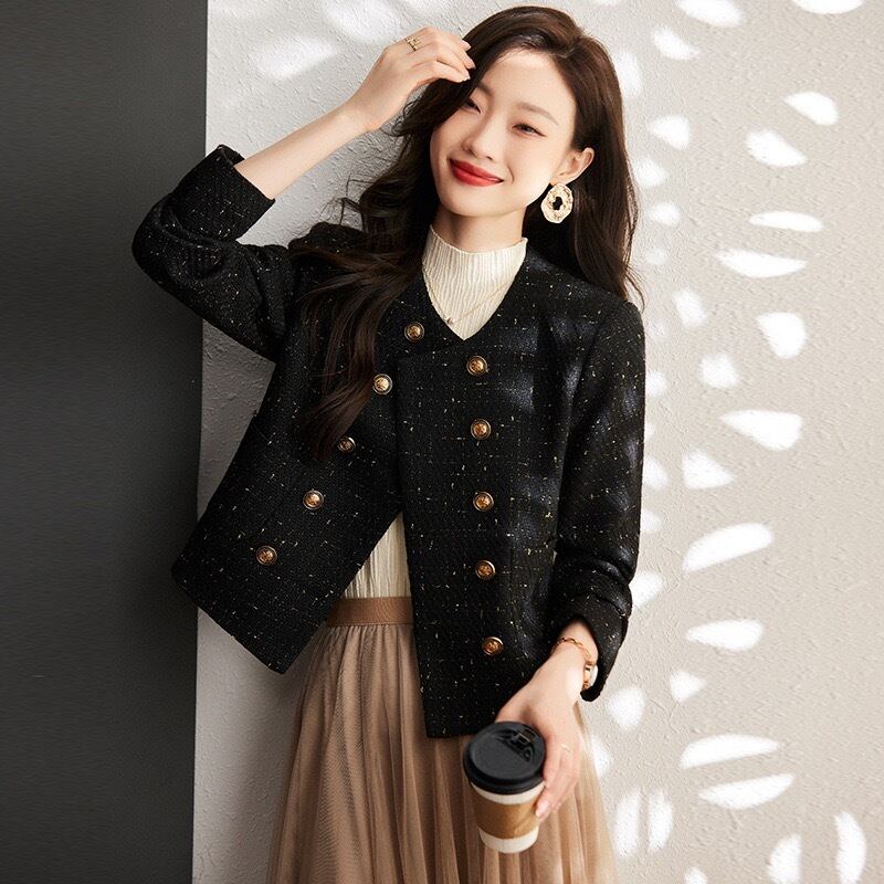 ジャケット スーツジャケット ツイード アウター レディース 長袖 ラウンドネック ボタン 前開き スリム フォーマル レトロ きれいめ お洒落 お出かけ お呼ばれ デート 秋 冬 ホワイト 白 ブラック 黒 S M L XL 2XL 3XL ラージサイズ 20代 30代 40代 大人 大人かっこいい コーデ コーディネート 韓国 ファッション オルチャン お取り寄せ 送料無料 hll-0353
