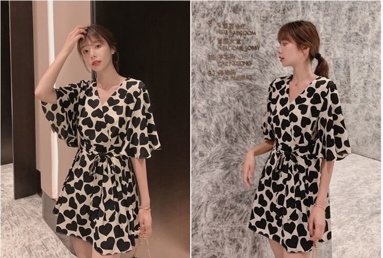 セットアップ レディース トップス ボトムス パンツ キュロット スカート 五分袖 ミニ ショート Vネック 春 夏 リゾート 海 お泊り デート かわいい 黒 白 花 ドット 水玉 フレア 10代 20代 大人 コーデ コーディネート 韓国 ファッション オルチャン お取り寄せ 送料無料 hll-0638
