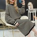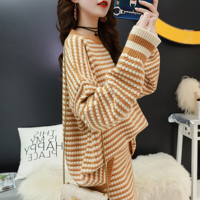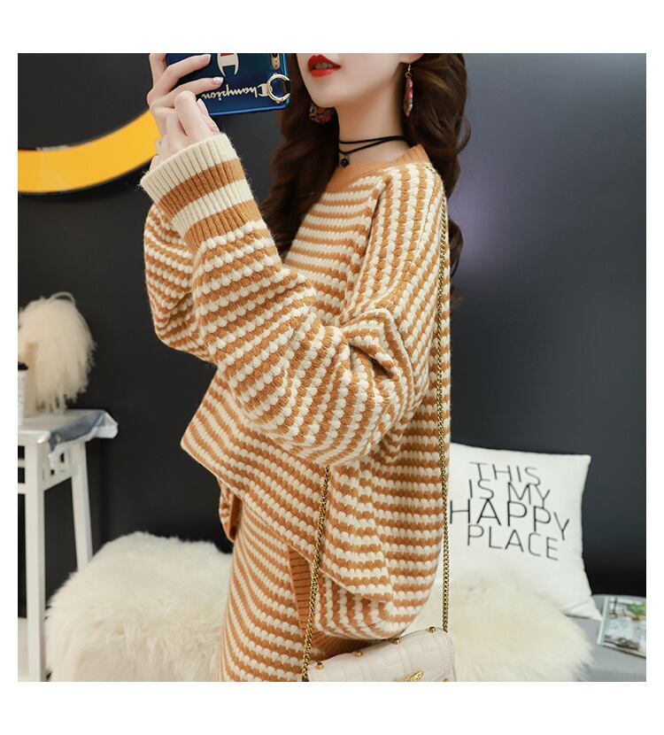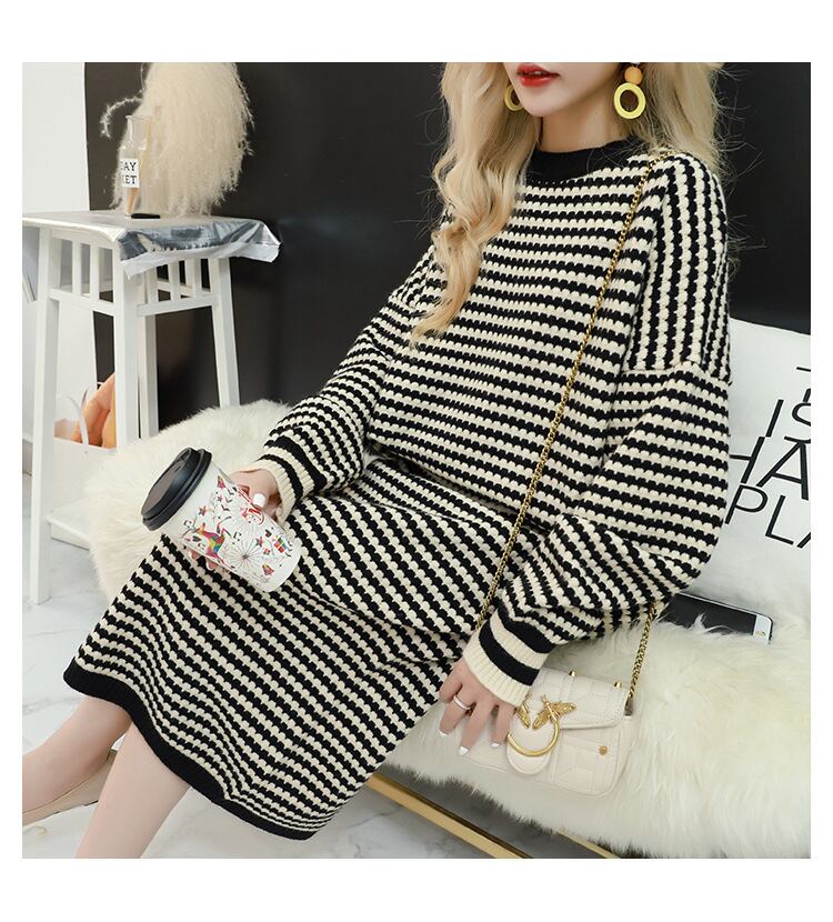セットアップ レディース トップス ボトムス スカート ニット プルオーバー ボーダー ラウンドネック ドロップショルダー 長袖 ウエストゴム ひざ下 カジュア ルデート ぬけ感 お出かけ 秋 黒 20代 30代 大人 コーデ コーディネート 韓国 ファッション オルチャン お取り寄せ 送料無料 hll-0642
