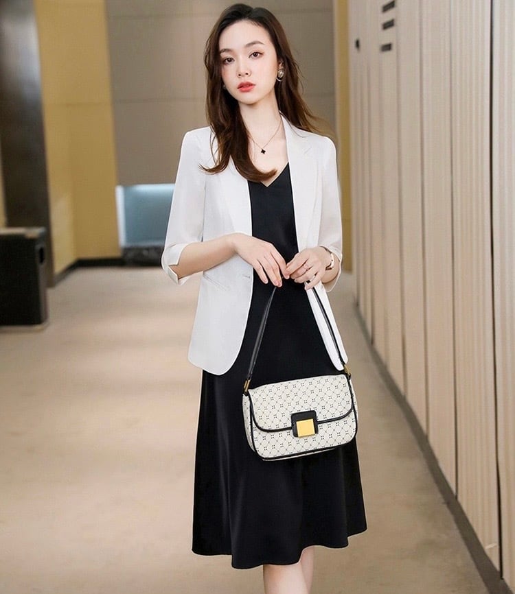 セットアップ スカートスーツ ワンピース 膝丈 ジャケット 2点セット レディース 五分袖 襟付き ボタン 前開き ポケット スリム 大人女子 大人かっこいい お洒落 エレガント 春 夏 ホワイト 白 ブラック 黒 レッド 赤 シャンパン 20代 30代 S M L XL 2XL 3XL 4XL ラージサイズ お出かけ お呼ばれ パーティー イベント 大人 コーデ コーディネート 韓国 ファッション オルチャン お取り寄せ 送料無料 hll-0356