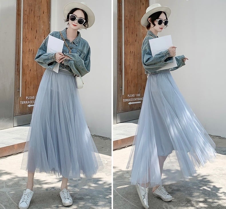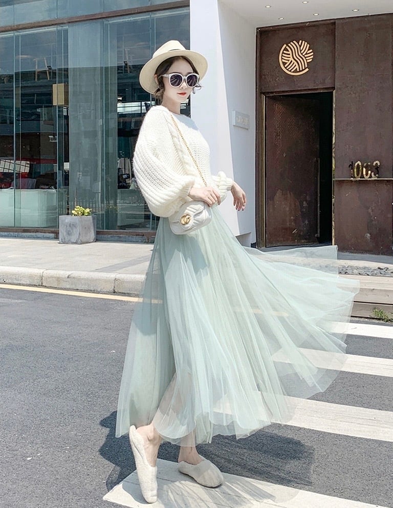 スカート ロングスカート プリーツスカート フェアリースカート Aラインスカート プリーツ ロング丈 ボトムス レディース ふわふわ 無地 透け感 ハイウエスト きれいめ 上品 清楚 大人女子 大人かっこいい 秋 冬 パープル 紫 ブルー 青 グリーン 緑 グレー 灰色 ブラウン 茶色 ブラック 黒 ワンサイズ 大人 お洒落 可愛い 10代 20代 お出かけ デート 女子会 普段使い 日常使い 普段着 休日 コーデ コーディネート 韓国 ファッション オルチャン お取り寄せ 送料無料 hll-0359