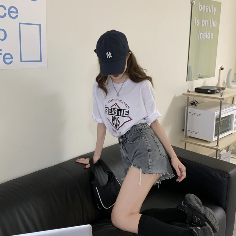 デニムパンツ レディース ボトムス パンツ ショートパンツ ショート ダメージ クール デート アメリカンスタイル ストリート系 ハイウエスト 春 夏 10代 20代 白 大人 コーデ コーディネート 韓国 ファッション オルチャン お取り寄せ 送料無料 hll-0651