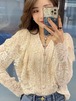 シャツ レースシャツ 花レース レース レディース トップス ボトムス 長袖 Vネック ボタン 前開き ルーズ カジュアル きれいめ 上品 お洒落 日常使い 普段着 普段使い デート お出かけ 女子会 休日 春 アプリコット S M L XL 2XL 10代 20代 30代 大人 コーデ コーディネート 韓国 ファッション オルチャン お取り寄せ 送料無料 hll-0366