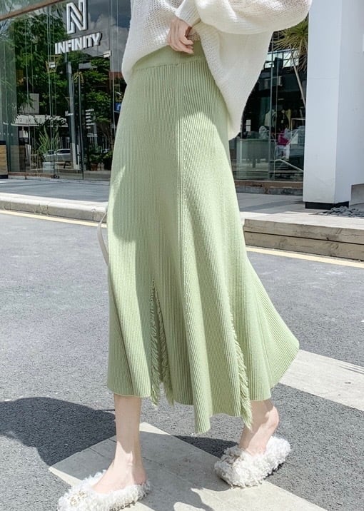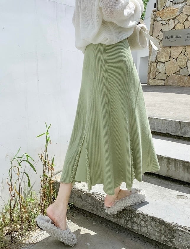 スカート ニットスカート ロングスカート Aラインスカート ニット ロング丈 ボトムス レディース タッセル 伸縮性 無地 ゆるふわ ハイウエスト きれいめ 上品 清楚 大人女子 大人かっこいい 秋 冬 ホワイト 白 グリーン 緑 ブラック 黒 S M L XL 大人 お洒落 可愛い 10代 20代 30代 お出かけ デート 女子会 普段使い 日常使い 普段着 コーデ コーディネート 韓国 ファッション オルチャン お取り寄せ 送料無料 hll-0369