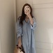 ルーズなシルエットが体型カバーにもなるロング丈長袖シャツワンピースです。