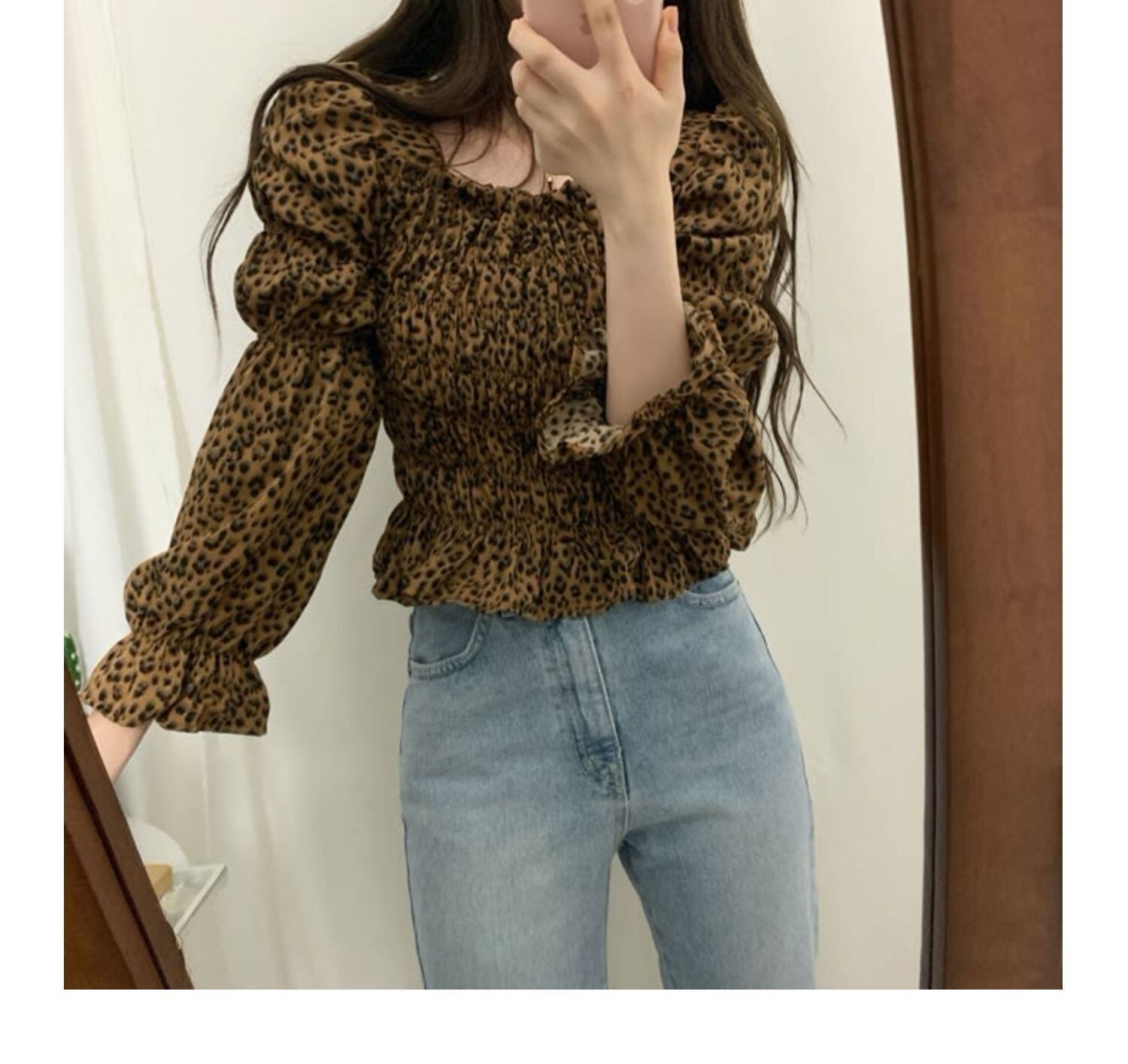 ヒョウ柄カットソー レディース トップス カットソー 長袖 スクエアネック クロップド丈 ボリューム袖 デコルテ ヒョウ柄 レオパード かわいい デート お出かけ 春 夏 秋 10代 20代 30代 大人 コーデ コーディネート 韓国 ファッション オルチャン お取り寄せ 送料無料 hll-0666