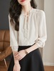 シャツ レディース トップス 長袖 前開き ボタン スタンドカラー きれいめ 上品 仕事 仕事用 仕事着 20代 30代 スーツ こなれ感 春 秋 大人 コーデ コーディネート 韓国 ファッション オルチャン お取り寄せ 送料無料 hll-0669