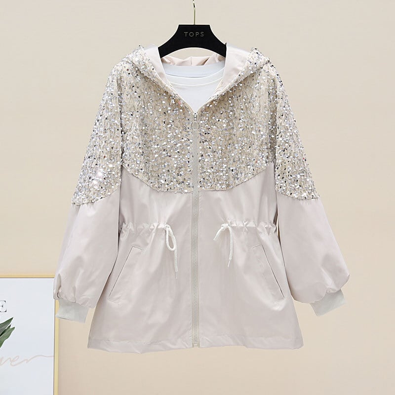 ジャンバー レディース アウター ウィンドブレーカー パーカー ジャケット キラキラ ウエストマーク フード 長袖 ジッパー カジュアル シンプル 白 黒 春 秋 通勤 通学 20代 30代 女性 大人 コーデ コーディネート 韓国 ファッション オルチャン お取り寄せ 送料無料 hll-0672