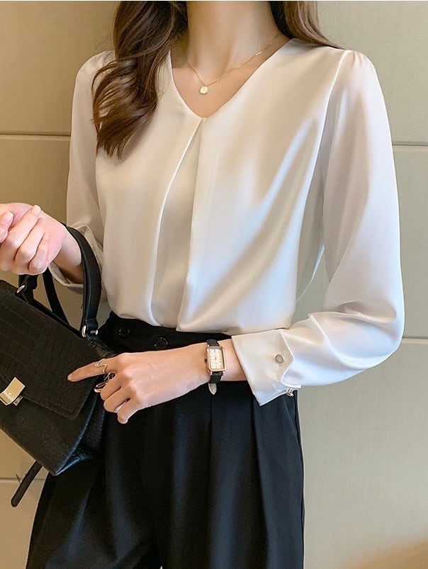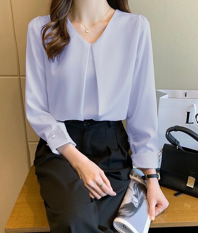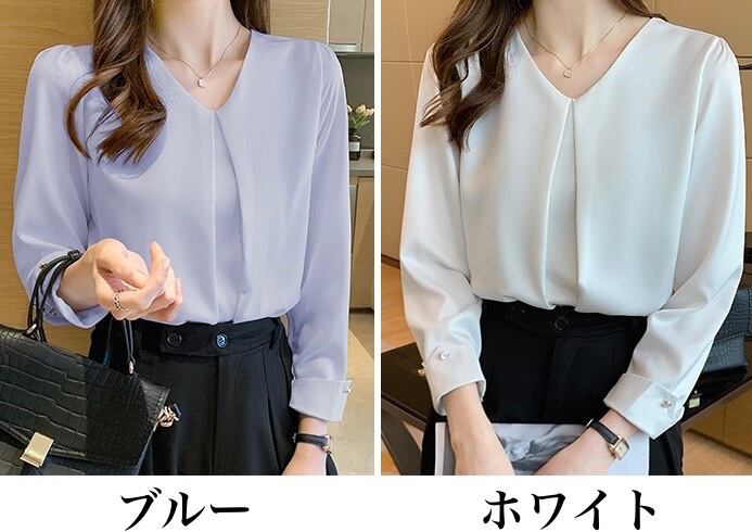 シャツ ブラウス シフォンシャツ シフォン レディース トップス 長袖 Vネック プルオーバー 無地 シンプル スリム レトロ カジュアル きれいめ 上品 清楚 お洒落 普段使い OL 通勤 ビジネス オフィス 普段着 日常使い お出かけ デート 女子会 春 秋 ホワイト 白 ブルー 青 S M L XL 2XL 20代 30代 大人 大人かっこいい コーデ コーディネート 韓国 ファッション オルチャン お取り寄せ 送料無料 hll-0393
