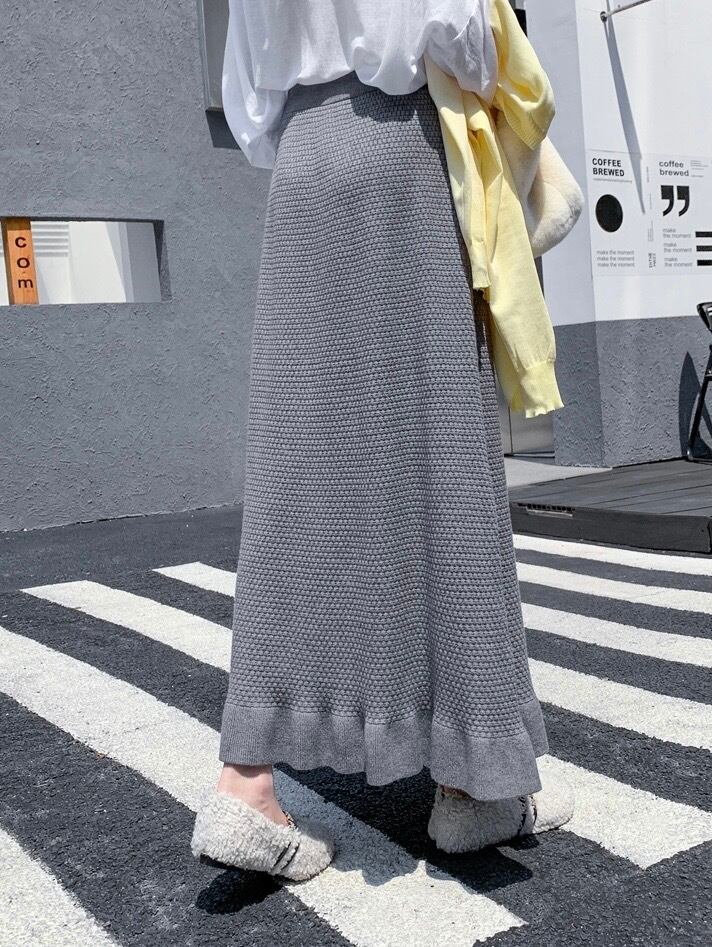 スカート ニットスカート ロングスカート ウールスカート Aラインスカート ウール ニット ロング丈 ボトムス レディース 伸縮性 ゆるふわ ハイウエスト きれいめ 上品 清楚 大人女子 大人かっこいい 秋 冬 グリーン 緑 グレー 灰色 ブラック 黒 ワンサイズ 大人 お洒落 可愛い 20代 30代 お出かけ デート 女子会 普段使い 日常使い 普段着 コーデ コーディネート 韓国 ファッション オルチャン お取り寄せ 送料無料 hll-0399