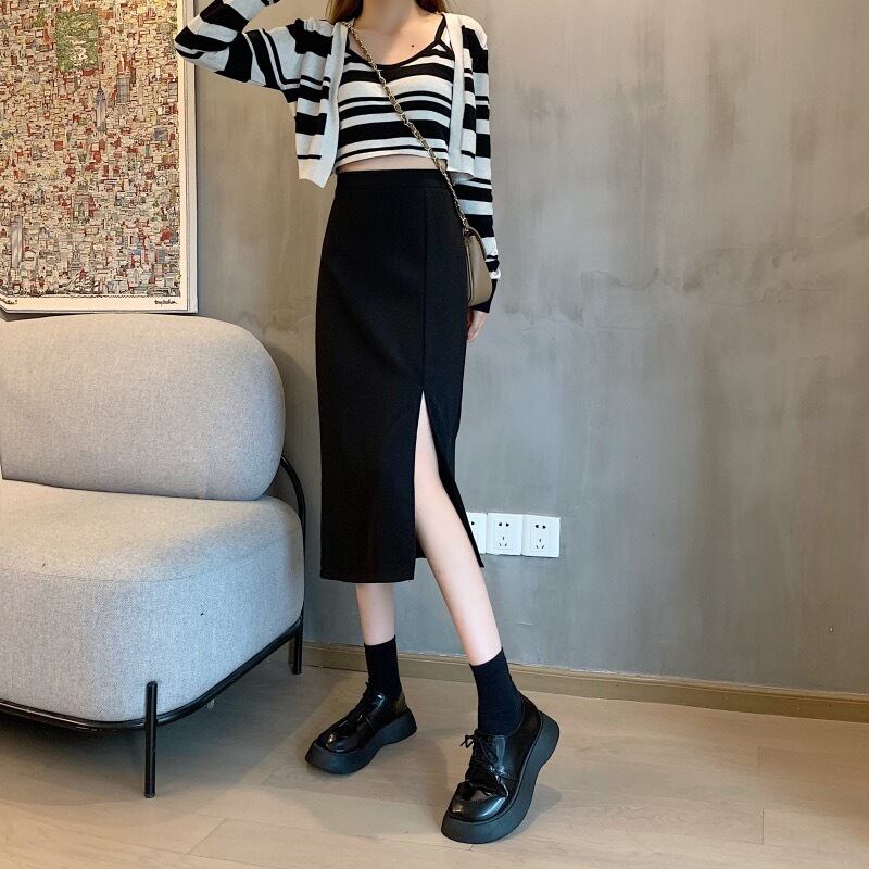 スカート Aラインスカート Aライン ミドル丈 ボトムス レディース 無地 スリット サイドスリット ハイウエスト カジュアル きれいめ 上品 清楚 大人女子 大人かっこいい 春 夏 カーキ ブラック 黒 XS S M L XL 2XL 3XL 4XL 大人 お洒落 可愛い 20代 30代 OL 通勤 お出かけ デート 女子会 休日 コーデ コーディネート 韓国 ファッション オルチャン お取り寄せ 送料無料 hll-0410