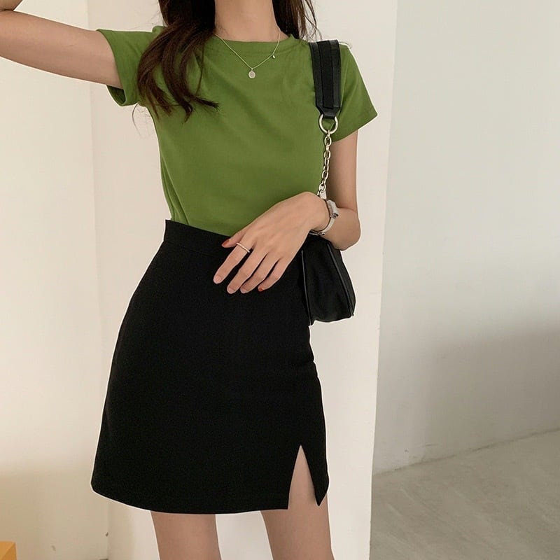 タイトスカート Aラインスカート スーツスカート ショートスカート ショート丈 ボトムス レディース シンプル 無地 スリット サイドスリット ハイウエスト きれいめ 上品 清楚 大人女子 大人かっこいい 春 夏 ブラック 黒 S M L XL 2XL 3XL 4XL 5XL ラージサイズ 大人 お洒落 可愛い 20代 30代 OL 通勤 オフィス お出かけ コーデ コーディネート 韓国 ファッション オルチャン お取り寄せ 送料無料 hll-0421