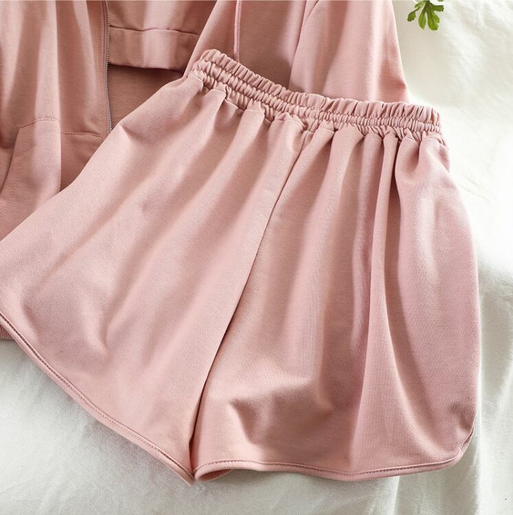 セットアップ パーカー フード付き タンクトップ ショートパンツ 3点セット レディース 上下セット 長袖 ジッパー ファスナー 前開き スポーティー カジュアル ルーズ 大人女子 大人かっこいい お洒落 エレガント 春 秋 ホワイト 白 ピンク グレー 灰色 ブラック 黒 10代 20代 スポーツ 運動 アウトドア 大人 コーデ コーディネート 韓国 ファッション オルチャン お取り寄せ 送料無料 hll-0428