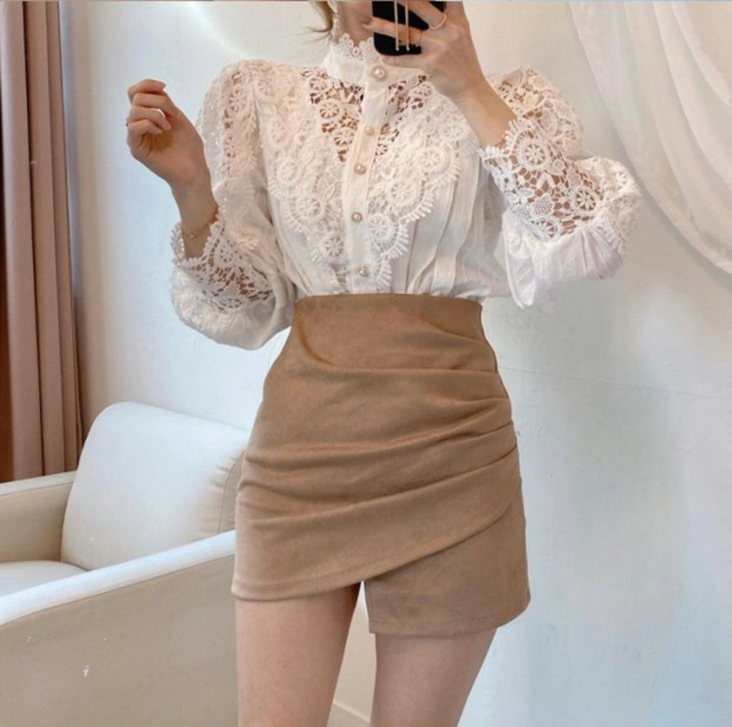 シャツ ブラウス レースシャツ レース 総レース レディース トップス 長袖 スタンドカラー 透け感 パールボタン 前開き 刺繍 スリム レトロ きれいめ 上品 清楚 お洒落 お出かけ お呼ばれ デート 女子会 秋 ホワイト 白 アプリコット ワンサイズ 20代 30代 大人 大人かっこいい コーデ コーディネート 韓国 ファッション オルチャン お取り寄せ 送料無料 hll-0431