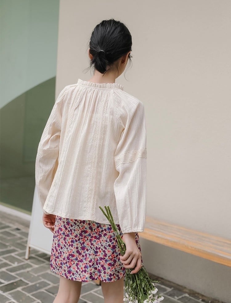 フェミニンな印象を与えるカジュアルな長袖シャツです。