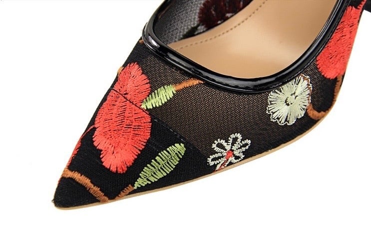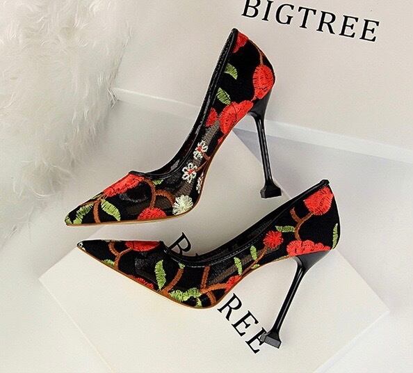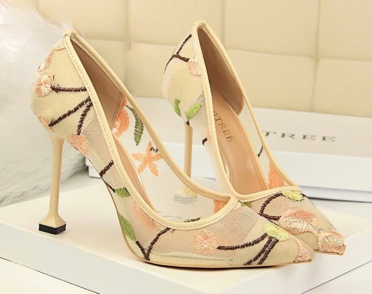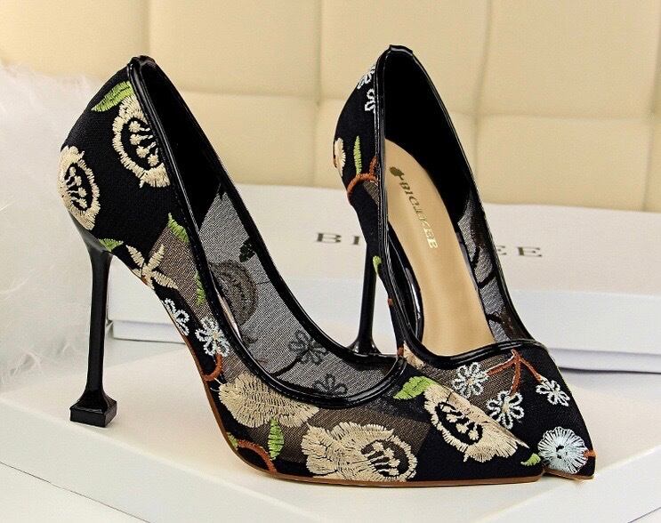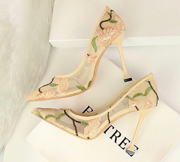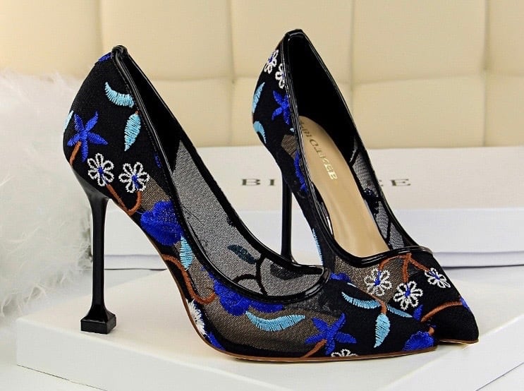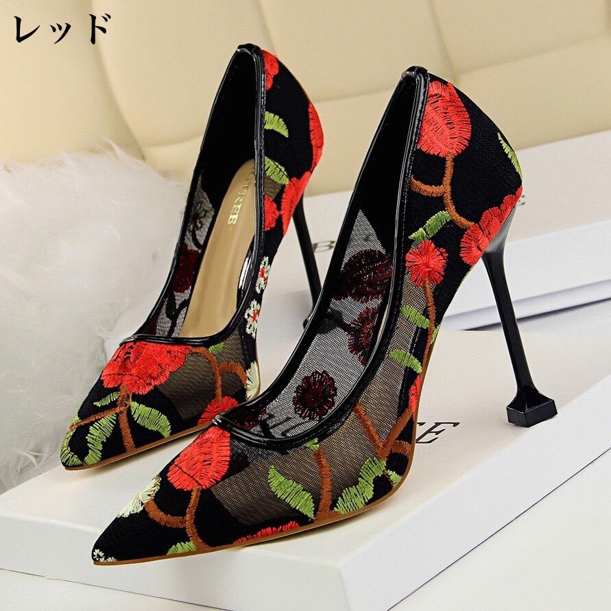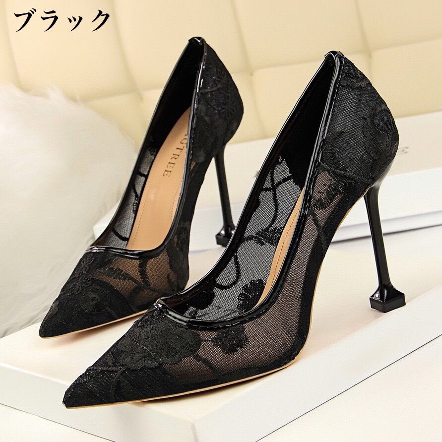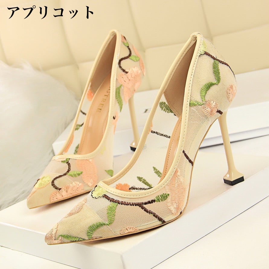 ハイヒール メッシュ レース 花柄 レディース 靴 ポインテッドトゥ 透け感 PU セクシー レトロ きれいめ お洒落 上品 清楚 かっこいい お出かけ デート お呼ばれ パーティー 女子会 夏 アプリコット レッド 赤 ブルー 青 ゴールド 金 ブラック 黒 20代 30代 大人 大人かっこいい コーデ コーディネート 韓国 ファッション オルチャン お取り寄せ 送料無料 hll-0458