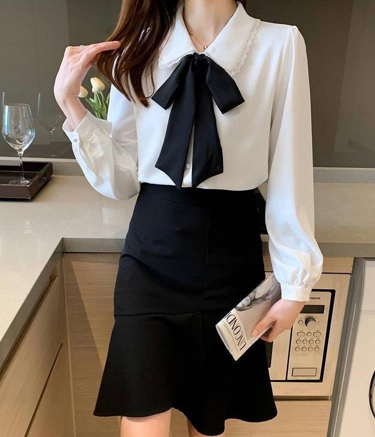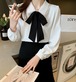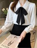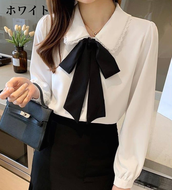 シャツ ブラウス シフォンシャツ シフォン レディース トップス 長袖 パフスリーブ 襟付き ポロカラー ボタン 前開き リボン 無地 シンプル ルーズ レトロ カジュアル きれいめ 上品 清楚 お洒落 OL 通勤 オフィス ビジネス お出かけ デート 女子会 春 秋 ホワイト 白 アプリコット S M L XL 20代 30代 大人 大人かっこいい コーデ コーディネート 韓国 ファッション オルチャン お取り寄せ 送料無料 hll-0467