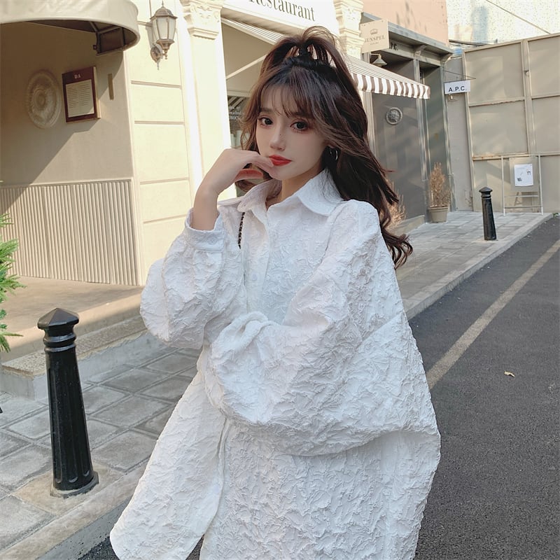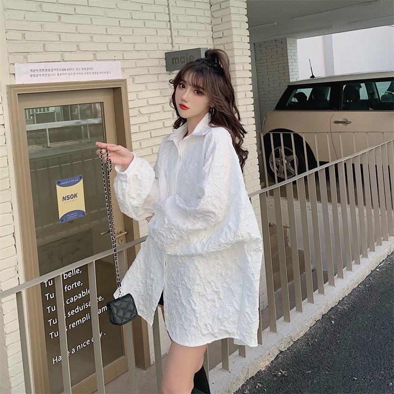 オーバーサイズシャツ レディース トップス シャツ 長袖 襟付き ドロップショルダー ボタン オーバーサイズ 前開き 白 春 カジュアル シンプル エンボス 刺繡 かわいい フェミニン ガーリー 10代 20代 女子 大人 コーデ コーディネート 韓国 ファッション オルチャン お取り寄せ 送料無料 hll-0787