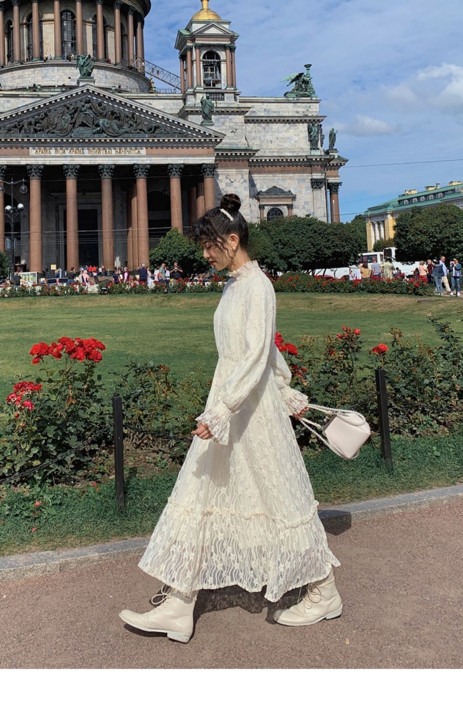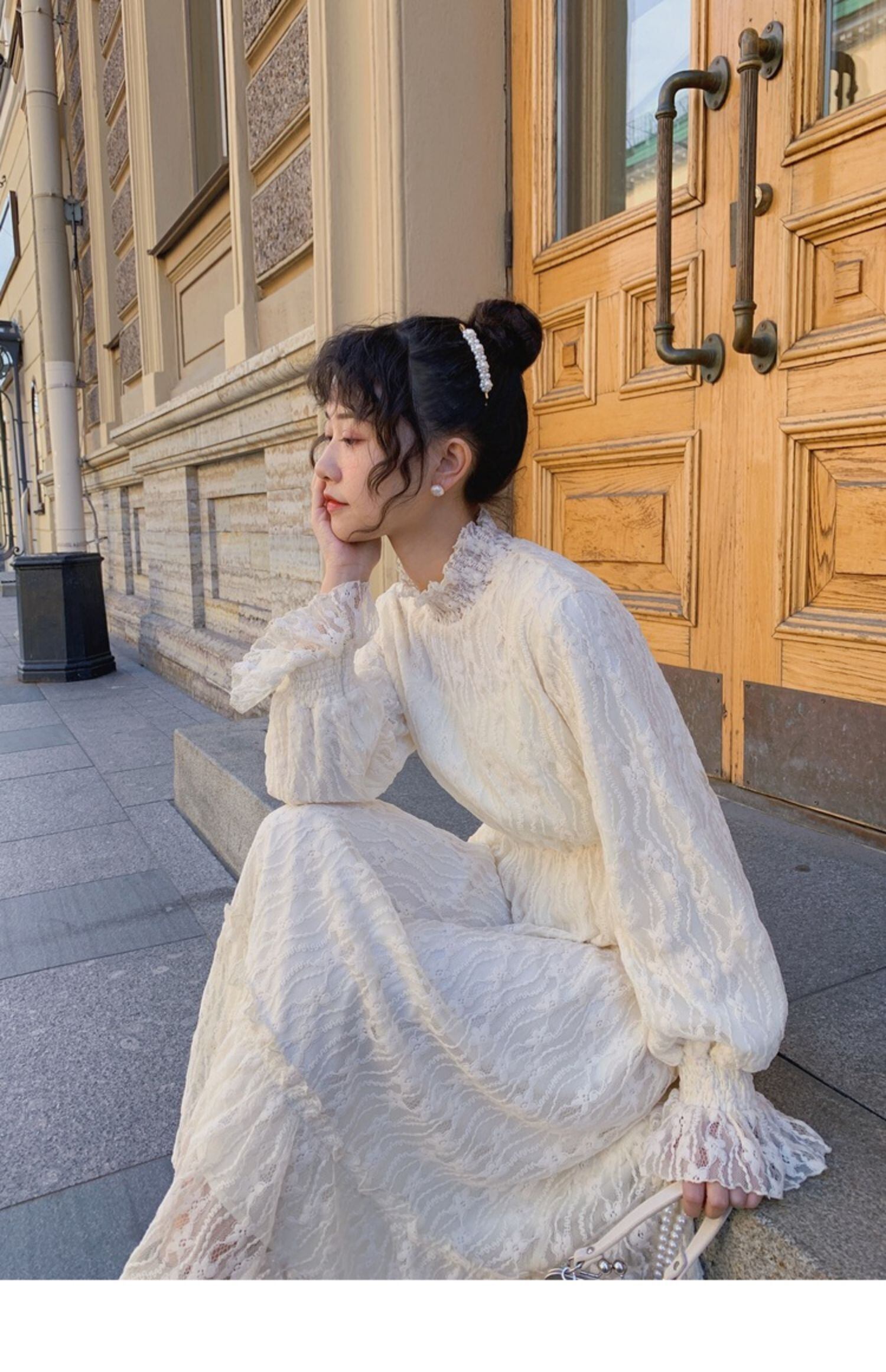 ロングワンピース レディース ワンピース ロング 長袖 レース かわいい フェミニン ガーリー 繊細 10代 20代 女子 白 3XL デート お出かけ 春 普段使い 大人 コーデ コーディネート 韓国 ファッション オルチャン お取り寄せ 送料無料 hll-0792