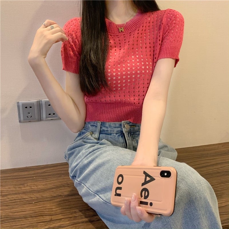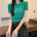 Tシャツ カットソー ニットTシャツ ニット ショート丈 レディース トップス 半袖 ラウンドネック 無地 プルオーバー スリム レトロ カジュアル きれいめ 上品 清楚 お洒落 普段使い 普段着 日常使い お出かけ デート 女子会 休日 夏 ホワイト 白 ピンク グリーン 緑 ブラック 黒 S M L 10代 20代 30代 大人 大人かっこいい コーデ コーディネート 韓国 ファッション オルチャン お取り寄せ 送料無料 hll-0757
