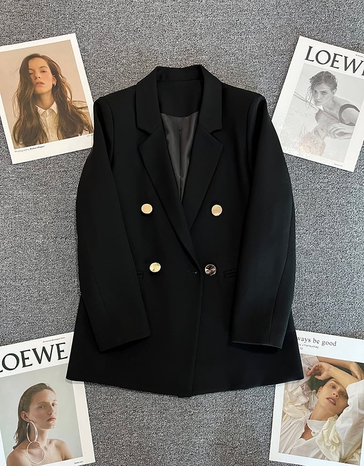 スーツジャケット レディース ジャケット スーツ ダブルボタン 襟付き 長袖 テーラージャケット カジュアル きれいめ 仕事着 入学式 卒業式 表彰式 パーティー 黒 白 通勤 営業 バリキャリ 女子 20代 30代 女性 大人 コーデ コーディネート 韓国 ファッション オルチャン お取り寄せ 送料無料 hll-0852