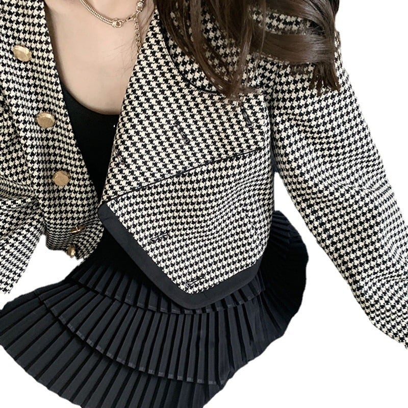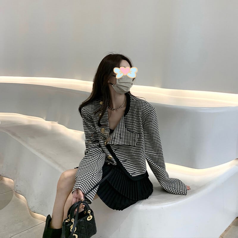 セットアップ レディース ジャケット ミニスカート ミニ プリーツ トップス ボタン 長袖 千鳥格子 クラシカル 黒 かわいい 可愛い 日常 デート お出かけ10代 20代 女子 春 夏 秋 冬 大人 コーデ コーディネート 韓国 ファッション オルチャン お取り寄せ 送料無料 hll-0861
