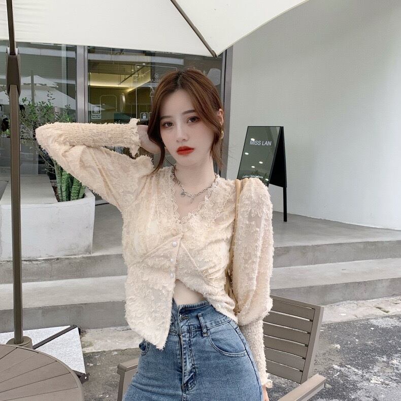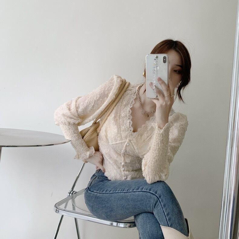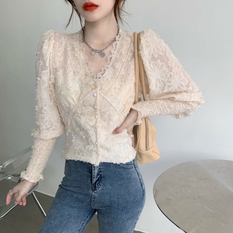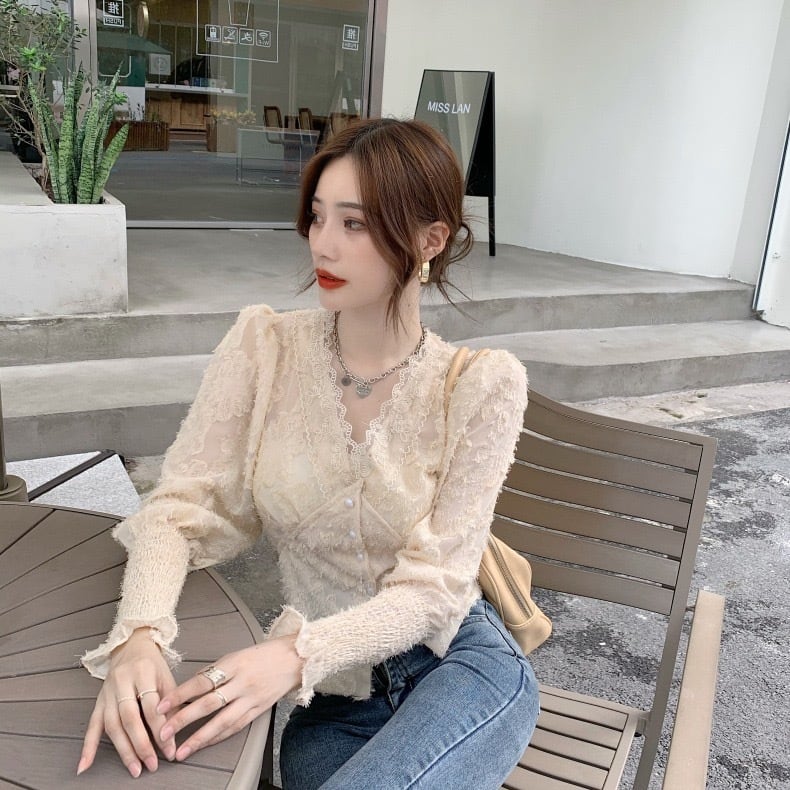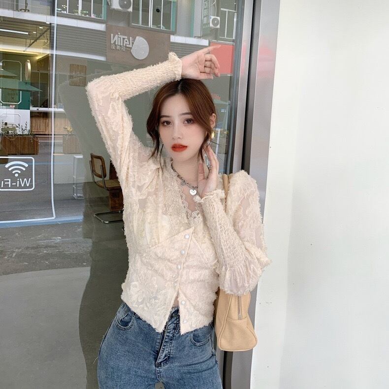 シャツ レースシャツ レース レディース トップス 長袖 Vネック ボタン 前開き スリム シック レトロ カジュアル きれいめ 上品 清楚 お洒落 普段使い 普段着 日常使い お出かけ デート 女子会 休日 秋 冬 アプリコット ワンサイズ 10代 20代 30代 大人 大人かっこいい コーデ コーディネート 韓国 ファッション オルチャン お取り寄せ 送料無料 hll-0820