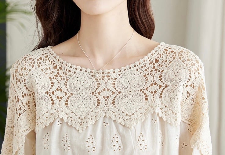 シャツ レースシャツ コットンシャツ レース コットン レディース トップス 長袖 ラウンドネック プルオーバー ルーズ シック レトロ カジュアル きれいめ 上品 清楚 お洒落 お出かけ デート 女子会 普段使い 日常使い 普段着 休日 春 アプリコット M L XL 2XL 20代 30代 大人 大人かっこいい コーデ コーディネート 韓国 ファッション オルチャン お取り寄せ 送料無料 hll-0827