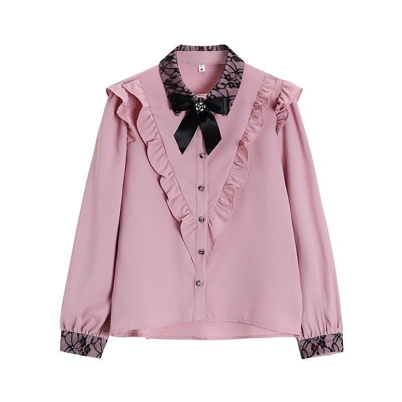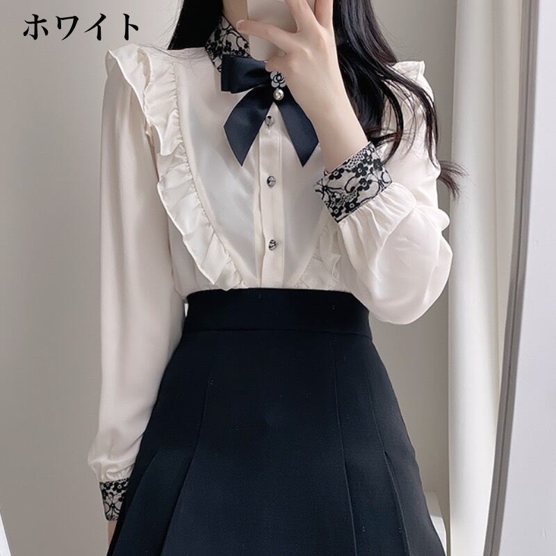 シャツ レース フリル レディース トップス 長袖 襟付き ポロカラー リボン ボタン 前開き ロリータ スリム シック レトロ カジュアル きれいめ 上品 清楚 お洒落 お出かけ デート 女子会 普段使い 日常使い 普段着 休日 春 秋 ホワイト 白 ピンク S M L XL 10代 20代 大人 大人かっこいい コーデ コーディネート 韓国 ファッション オルチャン お取り寄せ 送料無料 hll-0831