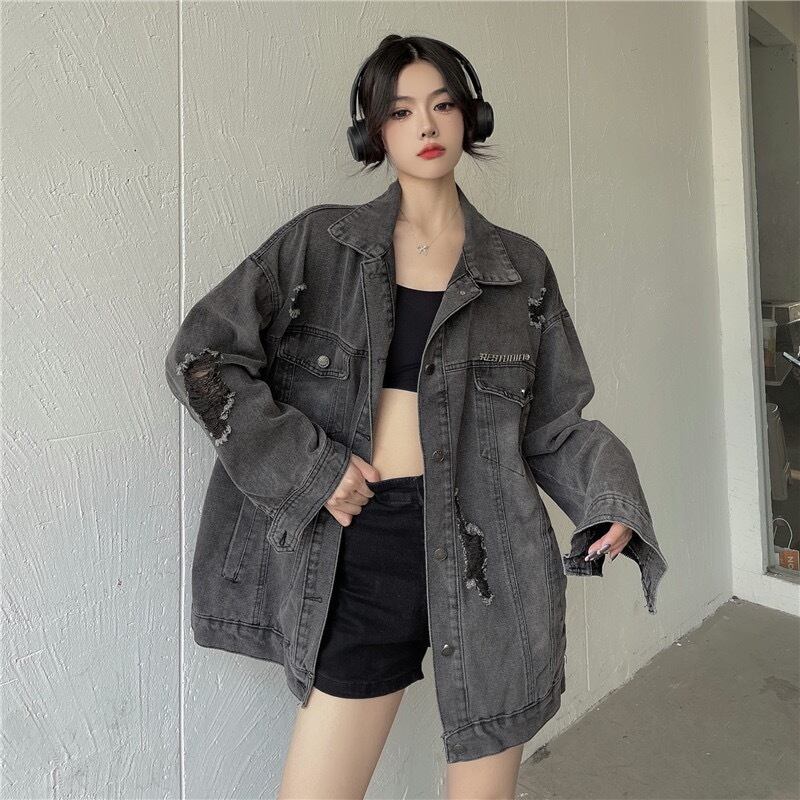 デニムジャケット デニム ジャケット ウォッシュドデニム Gジャン アウター レディース 長袖 襟付き ポロカラー ボタン 前開き ポケット ルーズ レトロ カジュアル きれいめ 可愛い お洒落 普段使い 学生 通学 OL 通勤 普段着 日常使い お出かけ デート 女子会 春 秋 ブラック 黒 S M L XL 10代 20代 30代 大人 大人可愛い コーデ コーディネート 韓国 ファッション オルチャン お取り寄せ 送料無料 hll-0834