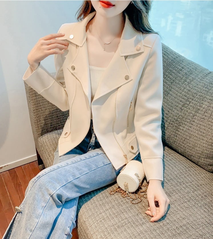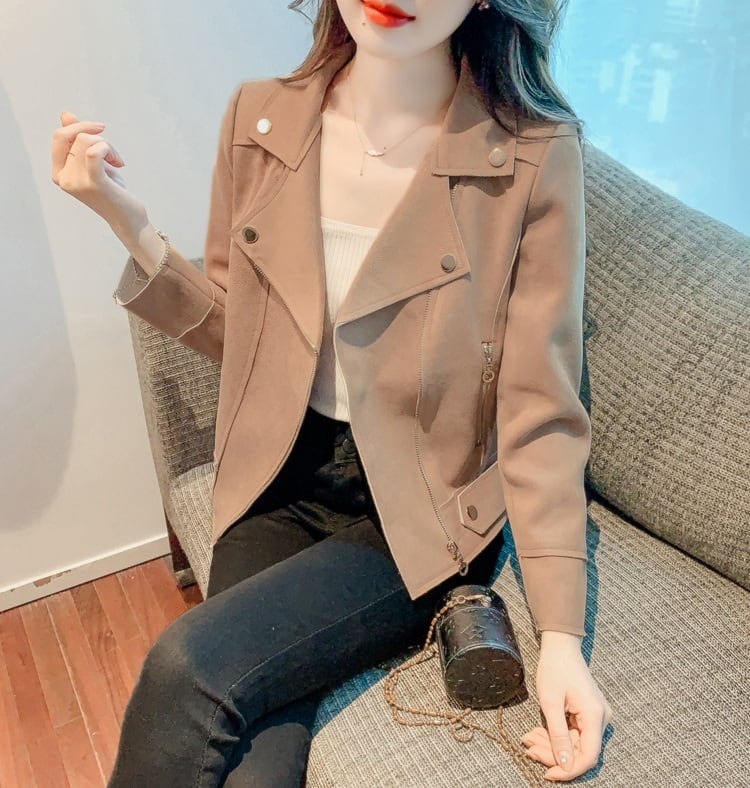 スエードジャケット レディース アウター スエード ジャケット ショート丈 襟付き 長袖 かっこいい きれいめ 無地 ジッパー クール 秋 冬 通勤 デート お出かけ 20代 30代 40代 女性 大人 コーデ コーディネート 韓国 ファッション オルチャン お取り寄せ 送料無料 hll-0874