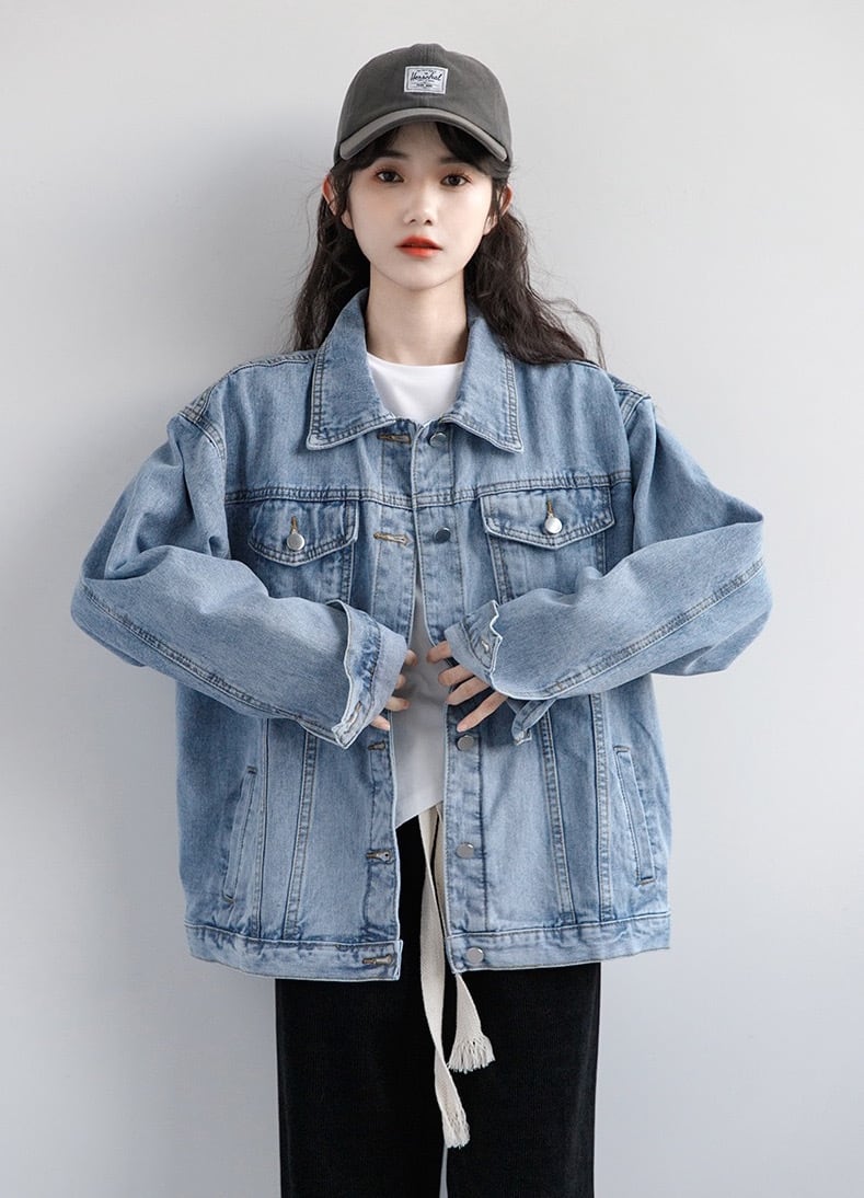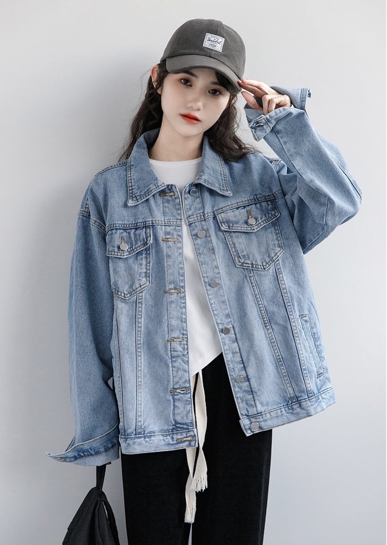 デニムジャケット デニム ジャケット Gジャン アウター レディース 長袖 襟付き ポロカラー ボタン 前開き ポケット ルーズ レトロ カジュアル きれいめ 可愛い お洒落 普段使い 学生 通学 OL 通勤 普段着 日常使い お出かけ デート 女子会 春 秋 ブルー 青 S M L 10代 20代 30代 大人 大人可愛い コーデ コーディネート 韓国 ファッション オルチャン お取り寄せ 送料無料 hll-0841