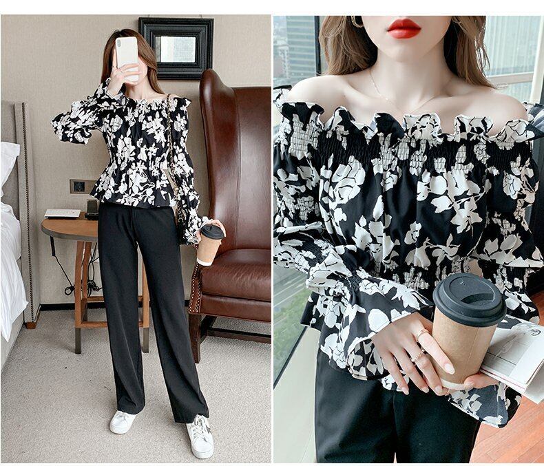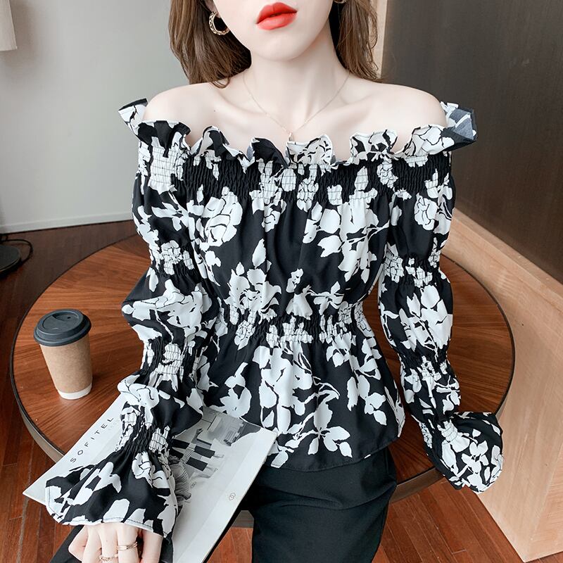 オフショルダーシャツ レディース トップス オフショルダー 長袖 ボリューム袖 デコルテ ウエストマーク 春 黒 かわいい 可愛い 日常 デート お出かけ 休日 普段使い きれいめ 10代 20代 女子 大人 コーデ コーディネート 韓国 ファッション オルチャン お取り寄せ 送料無料 hll-0950