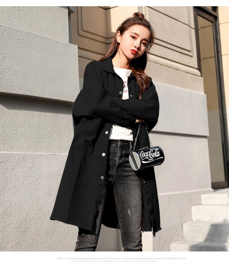 ロングシャツ レディース トップス アウター 襟付き 前開き ロング シャツ 長袖 カジュアル ストリートファッション 可愛い クラシカル ポケット 黒 ボタン 春 秋 10代 20代 女子 デート お出かけ 女子会 人気 大人 コーデ コーディネート 韓国 ファッション オルチャン お取り寄せ 送料無料 hll-1062