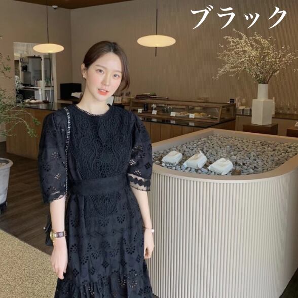 ワンピース レースワンピース ロング丈ワンピース ロング丈 透け感 レディース 五分袖 パフスリーブ ラウンドネック ハイウエスト スリム カジュアル レトロ 上品 清楚 エレガント 大人可愛い お洒落 大人 夏 ホワイト 白 ブラック 黒 S M L XL 2XL 普段着 普段使い 日常使い お出かけ デート 女子会 休日 コーデ コーディネート オルチャン 韓国 ファッション お取り寄せ 送料無料 hll-0927