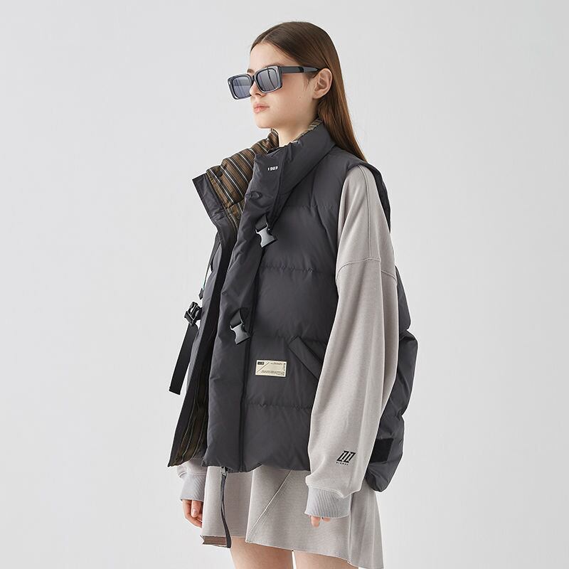 ベスト レディース アウター ハイネック ジッパー ノースリーブ ロゴ カジュアル スポーティー ストリート系 おしゃれ デート お出かけ 女子会 10代 20代 女性 XL 黒 春 秋 大人 コーデ コーディネート 韓国 ファッション オルチャン お取り寄せ 送料無料 hll-1077