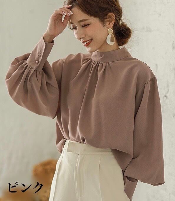 シャツ シフォンシャツ シフォン レディース トップス 長袖 パフスリーブ スタンドカラー プルオーバー ルーズ シック クール レトロ カジュアル きれいめ エレガント 上品 清楚 お洒落 OL 通勤 普段使い 日常使い 普段着 お出かけ デート 女子会 休日 春 ピンク ブルー 青 キャメル ホワイト 白 ブラウン 茶色 ブラック 黒 S M L 20代 30代 大人 大人かっこいい コーデ コーディネート 韓国 ファッション オルチャン お取り寄せ 送料無料 hll-0955