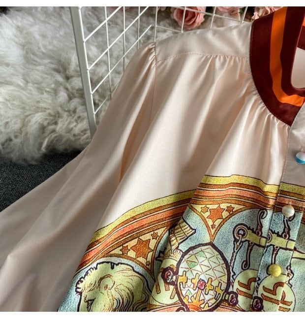 セットアップ レディース トップス ボトムス パンツ ショート 長袖 シャツ ブラウス 総柄 薄手 派手 豪華 春 夏 10代 20代 女性 デート お出かけ 女子会 可愛い XL 2XL 大人 コーデ コーディネート 韓国 ファッション オルチャン お取り寄せ 送料無料 hll-1089