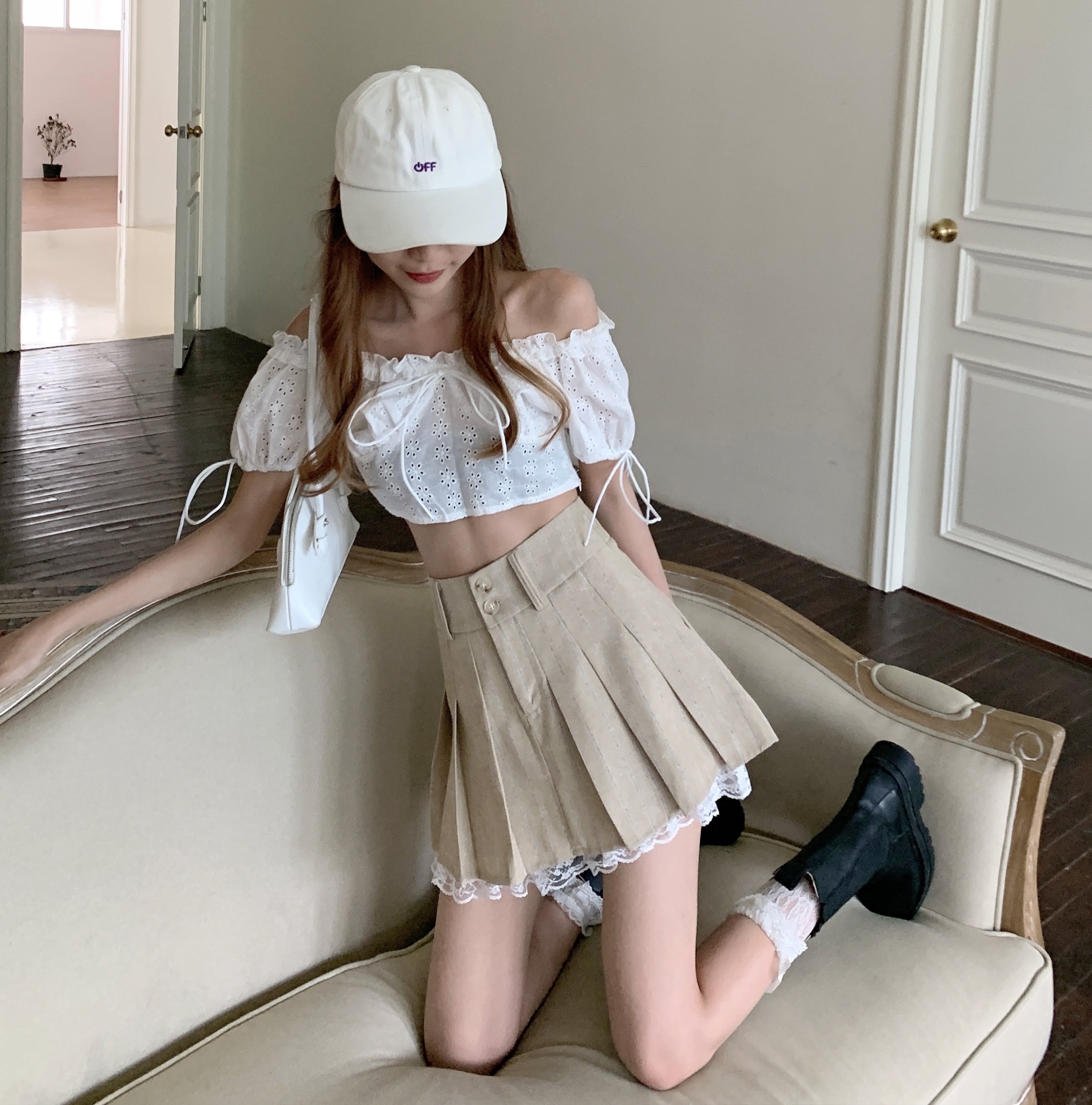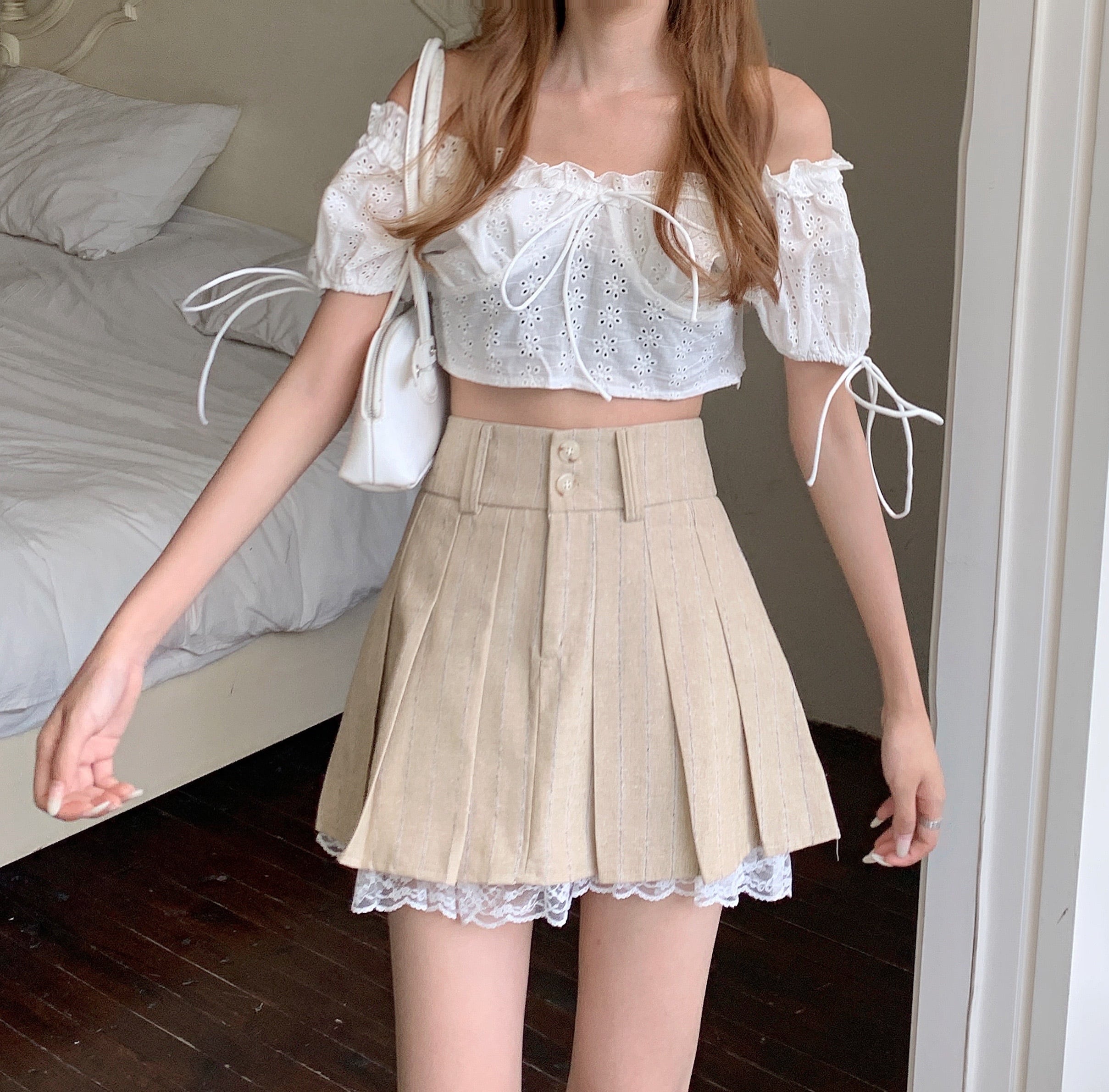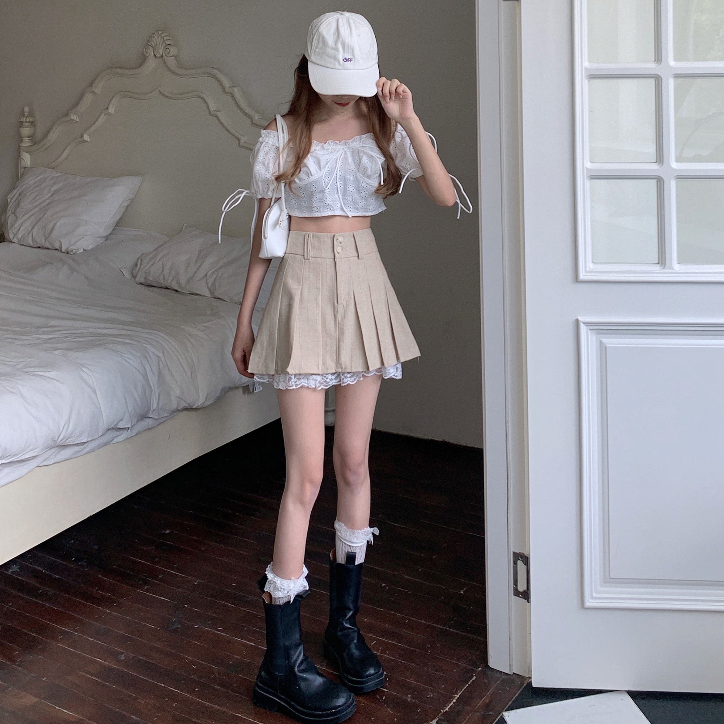 スカート プリーツスカート レーススカート Aラインスカート ミニスカート ショート丈 Aライン プリーツ レディース 無地 シンプル ハイウエスト カジュアル 大人女子 大人かっこいい お洒落 エレガント 夏 アプリコット S M L 10代 20代 普段使い 日常使い 普段着 お出かけ 女子会 デート 休日 大人 コーデ コーディネート 韓国 ファッション オルチャン お取り寄せ 送料無料 hll-1025