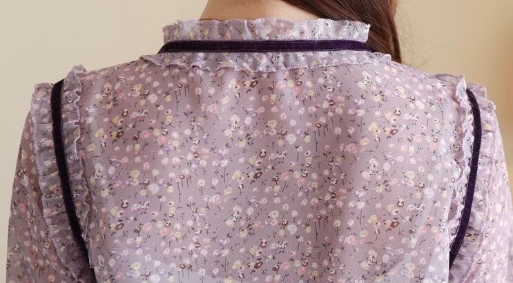 シャツ 長袖シャツ シフォンシャツ シフォン フリル リボン 花柄シャツ トップス レディース 長袖 ボタン 前開き 花柄 スリム レトロ カジュアル きれいめ 可愛い お洒落 普段使い 日常使い 普段着 お出かけ デート 女子会 秋 パープル 紫 S M L XL 2XL 20代 30代 大人 大人可愛い コーデ コーディネート 韓国 ファッション オルチャン お取り寄せ 送料無料 hll-1172