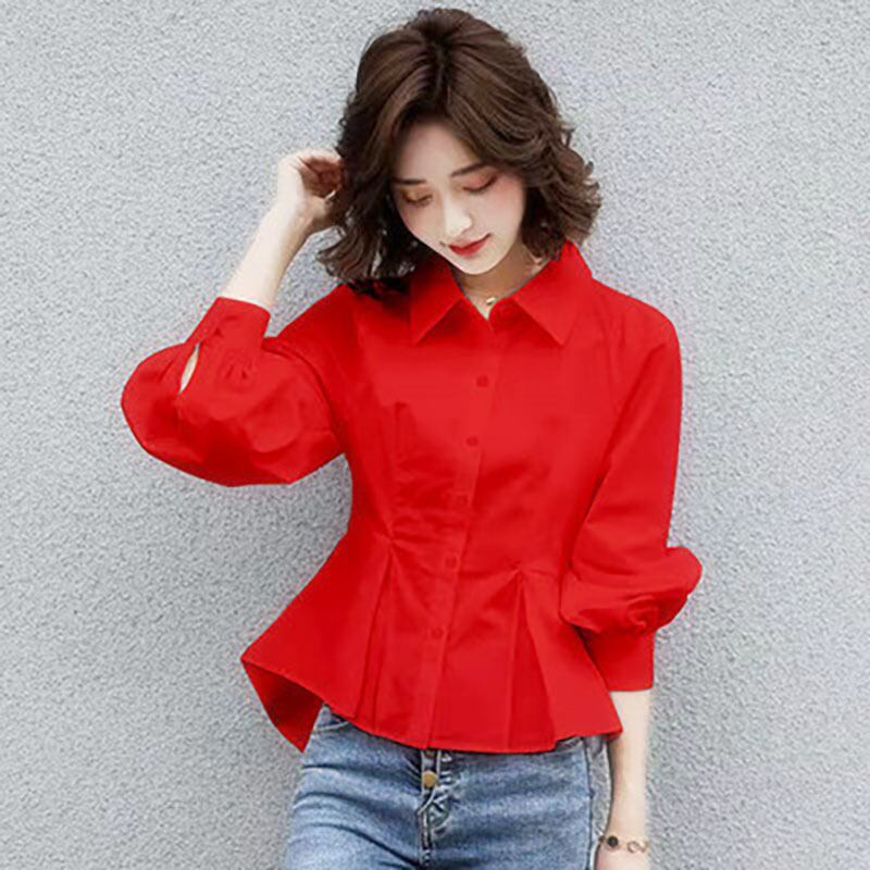 長袖シャツ レディース トップス シャツ 長袖 襟付き 前開き フレア きれいめ シンプル 無地 オフィス 仕事 20代 30代 女性 白 春 秋 デート お出かけ 女子会 2XL 3XL 大人 コーデ コーディネート 韓国 ファッション オルチャン お取り寄せ 送料無料 hll-1112
